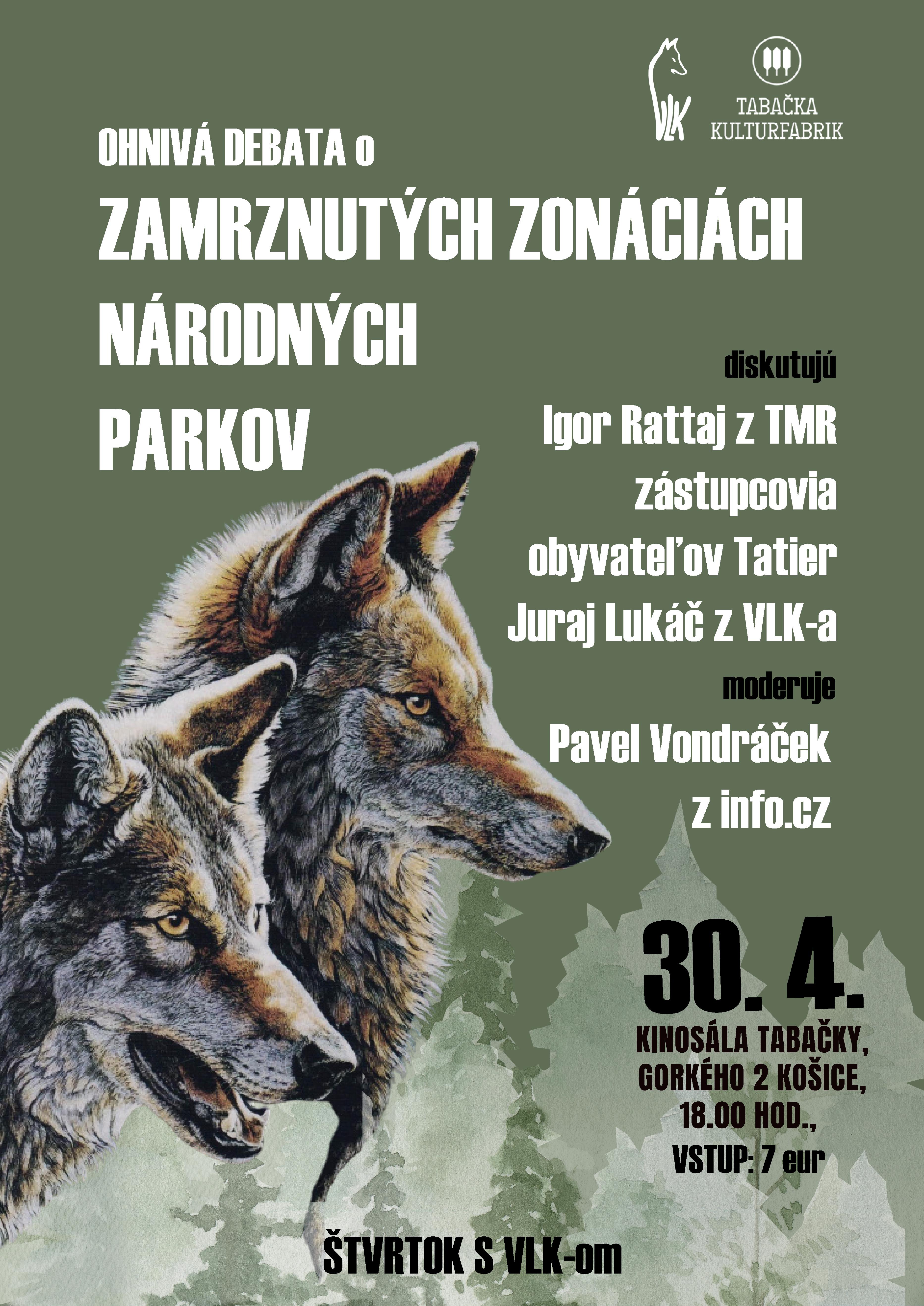 Pozývame už 30. 4. o 18.00 do košickej Tabačky, diskutovať budú Igor Rattaj, zástupcovia obyvateľov Tatier a Juraj Lukáč, moderuje Pavel Vondráček.